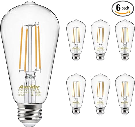 Ascher Vintage Led Edison Bulbs 60 Watt Equivalent Eye Protection Led Bulb With 95 Cri Bright Warm White 2700k Non Dimmable St58 Antique Led Filament Bulbs E26 Medium Base Pack Of 6 Amazon Com