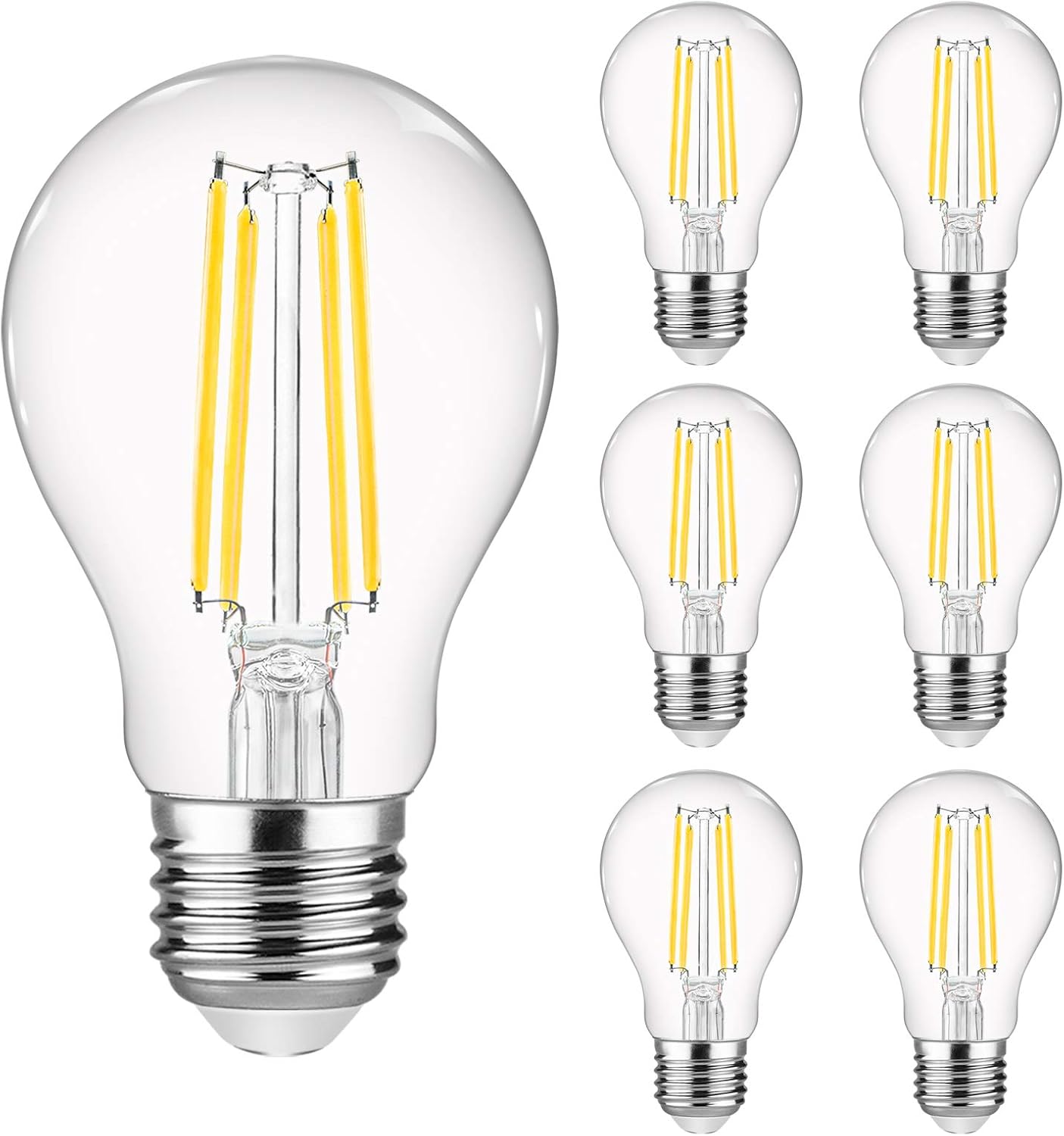 Amazon Com Ascher Classic Clear Glass E26 Led Light Bulb 60 Watt Equivalent Eye Protection A19 Led Bulb With 95 Cri Daylight White 4000k Non Dimmable E26 Medium Base Pack Of 6 Everything Else